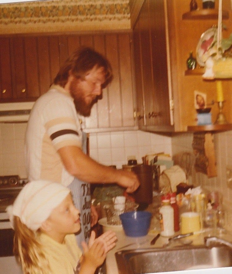 Whenever I write about violent Rudy, my childhood friends are surprised. The amount of work that went into keeping his violence a secret must have paid off. He never hit me and when he did land a punch on Mom’s face, she was skilled in hiding it. He was always nice, maybe a little crazy, to my friends. Hell, everyone had some loud relative who drank too much and partied too hard. They loved watching him play practical jokes on cocky boys at my parties. The boy would sit on the floor with his legs spread wide. Rudy would pour some water in front of his outstretched legs, hand the kid a pair of knives (!) and tell him to start chopping at the water. Rudy would then promise he could wipe up the water without a single knife touching his hands. Cocky teenager would start mad chopping. Rudy would grab his legs and pull him through the water, leaving the teen’s jeans wet on the ass. Mostly though, I stayed away from our house to avoid the Possibility of Mad Rudy. From middle school on, I spent most weekends at the homes of my best friends, going to Catholic church so often that I can still recite large portions of the liturgy. (We believe in one holy and apostolic church, we acknowledge on baptism for the forgiveness of all sins). By the time I was in high school, he’d largely sobered up and moved out. I loved him and so did Mom, but he couldn’t stay around. The second to last time I saw him, he helped me move into my dorm room, his long hair, desert boots and trucker hats no longer making me cringe. When my resident assistant freshmen year confronted me about throwing up in the communal bathroom, I went to a outpatient treatment program for eating disorders. Mom told me that Rudy went to the library to look up bulimia and to apologize for making me clear my plate.